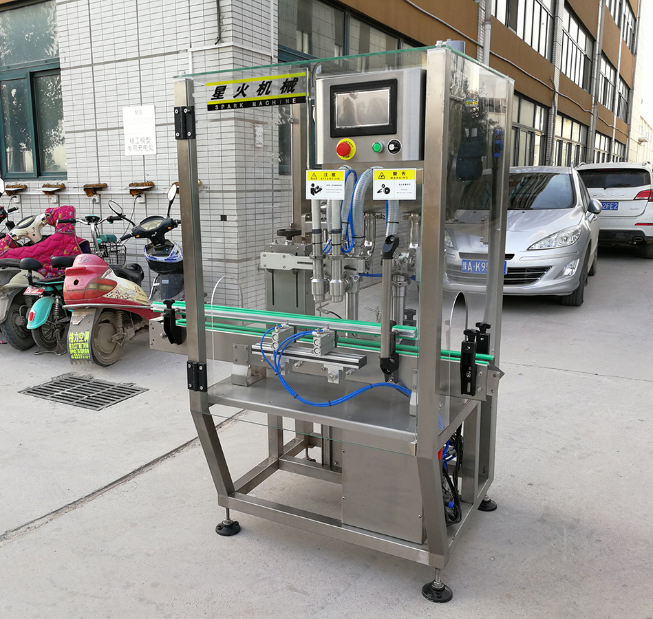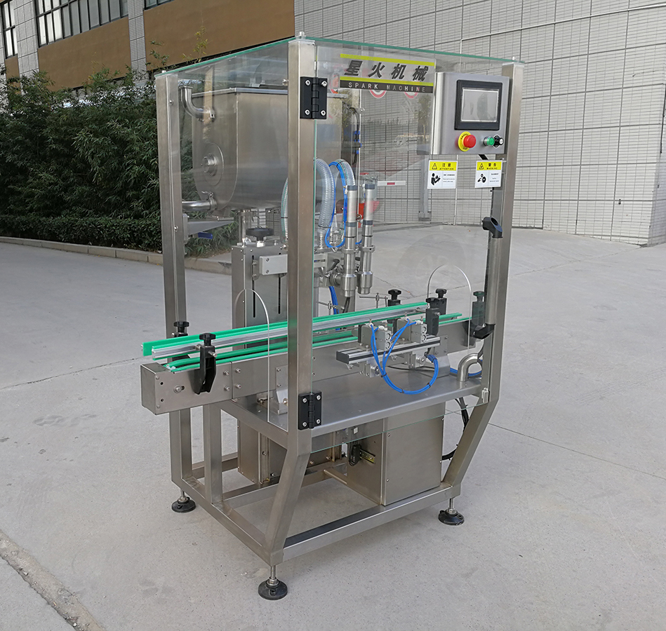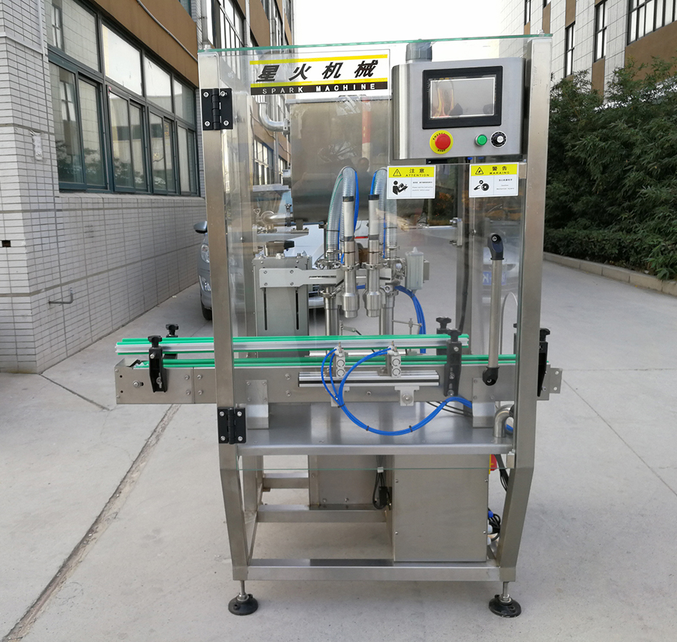 該機適合灌裝顆粒類醬料,是全自動辣椒醬灌裝機和豆豉醬灌裝機通用設備,目前在國內屬于比較先進的灌裝機產品,他的產生解決了以前辣椒醬廠家需要大量人力才能完成灌裝的難題,并且提高了產品的灌裝精度。該機和物料接觸部位全部采用316L不銹鋼制成,動力使用臺灣亞德客氣缸推動,整機干凈大方、動力強勁,使很多客戶順利解決了醬料生產企業QS認證。