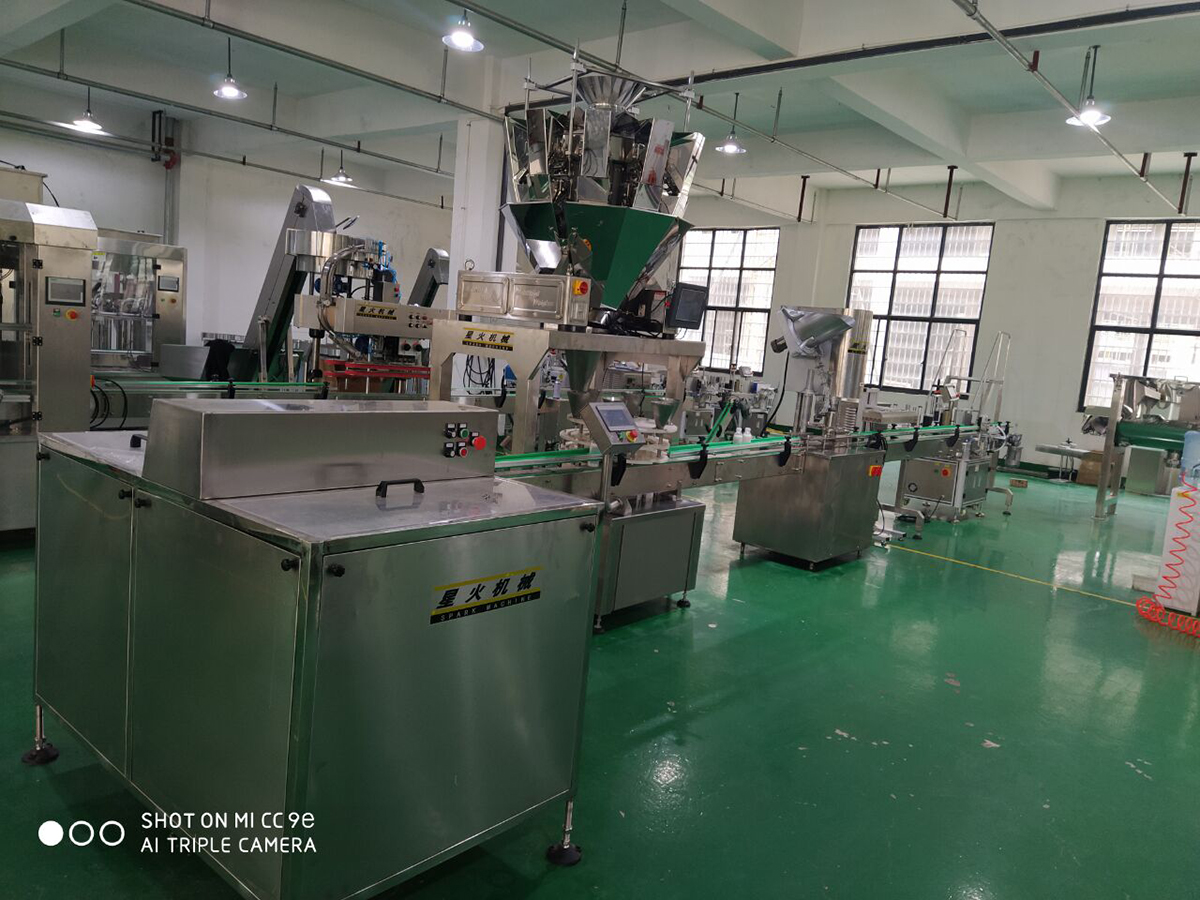 適用于中藥飲品,五谷雜糧、干果、堅果、調味料等顆粒狀物料灌裝生產,機器可完成自動上料、定量、灌裝、旋蓋、電磁感應封口、貼標、噴碼、裝箱等工作。常見應用:瓶裝瓜子、開心果、花生、大米、種子、花椒、魚餌、雜糧、等顆粒粉狀物料的定量稱重包裝。