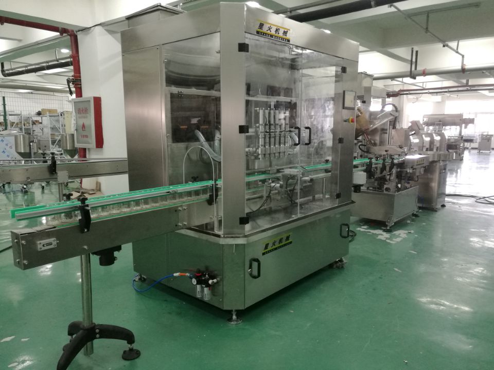 3、工作效率高,可搭配理瓶機、洗瓶機、直線旋蓋機、玻璃瓶貼標機、自動噴碼機、收瓶機等組成一條自動化灌裝生產線;