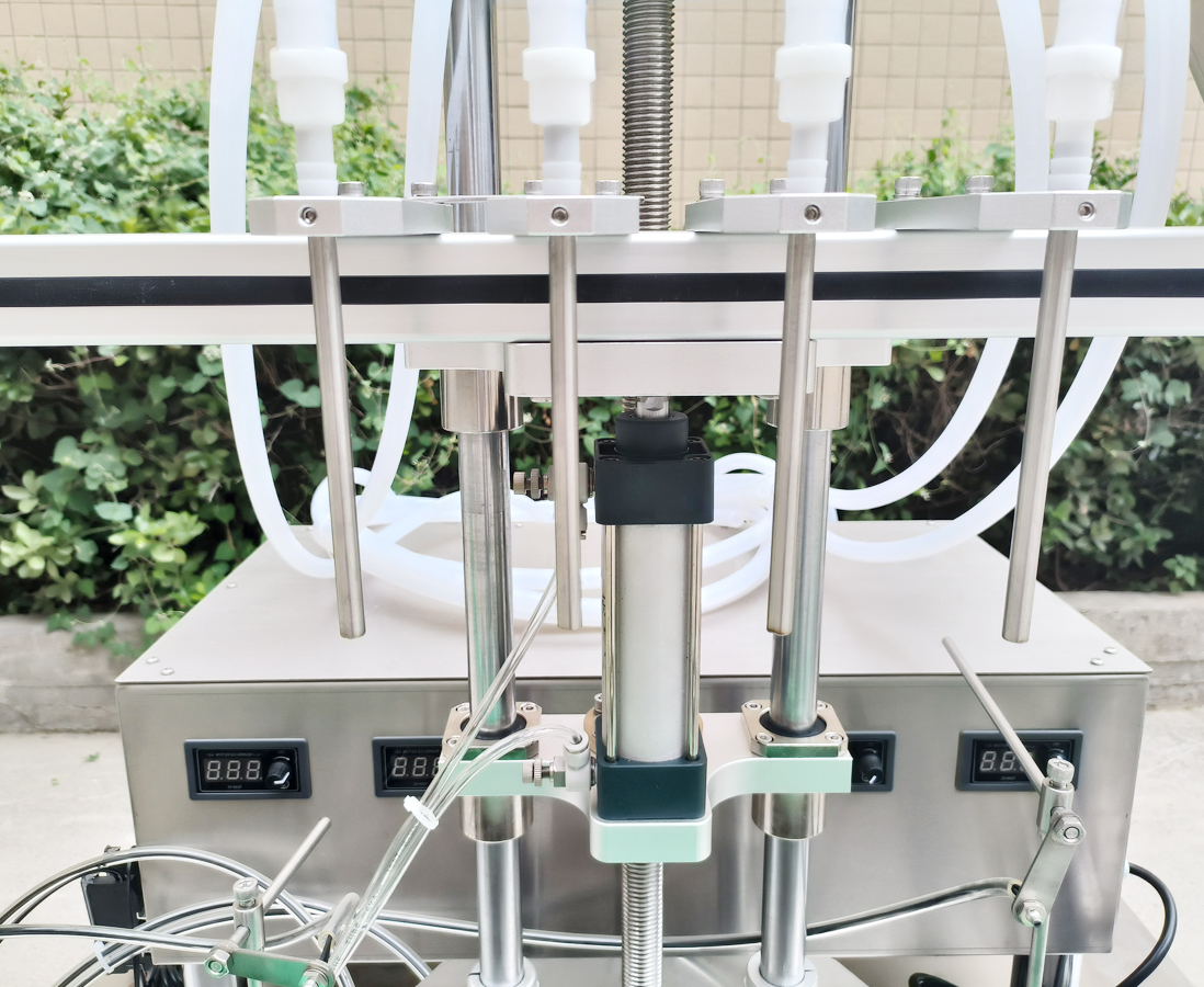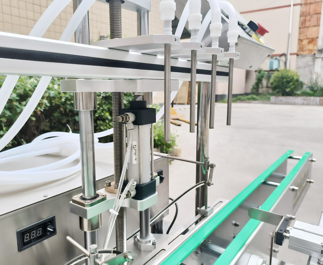 3.四頭同步灌裝,產能提升幾倍灌裝頭配備回吸裝置,停止瞬間自動回吸管道內的液體,不滴漏,不污染瓶身;