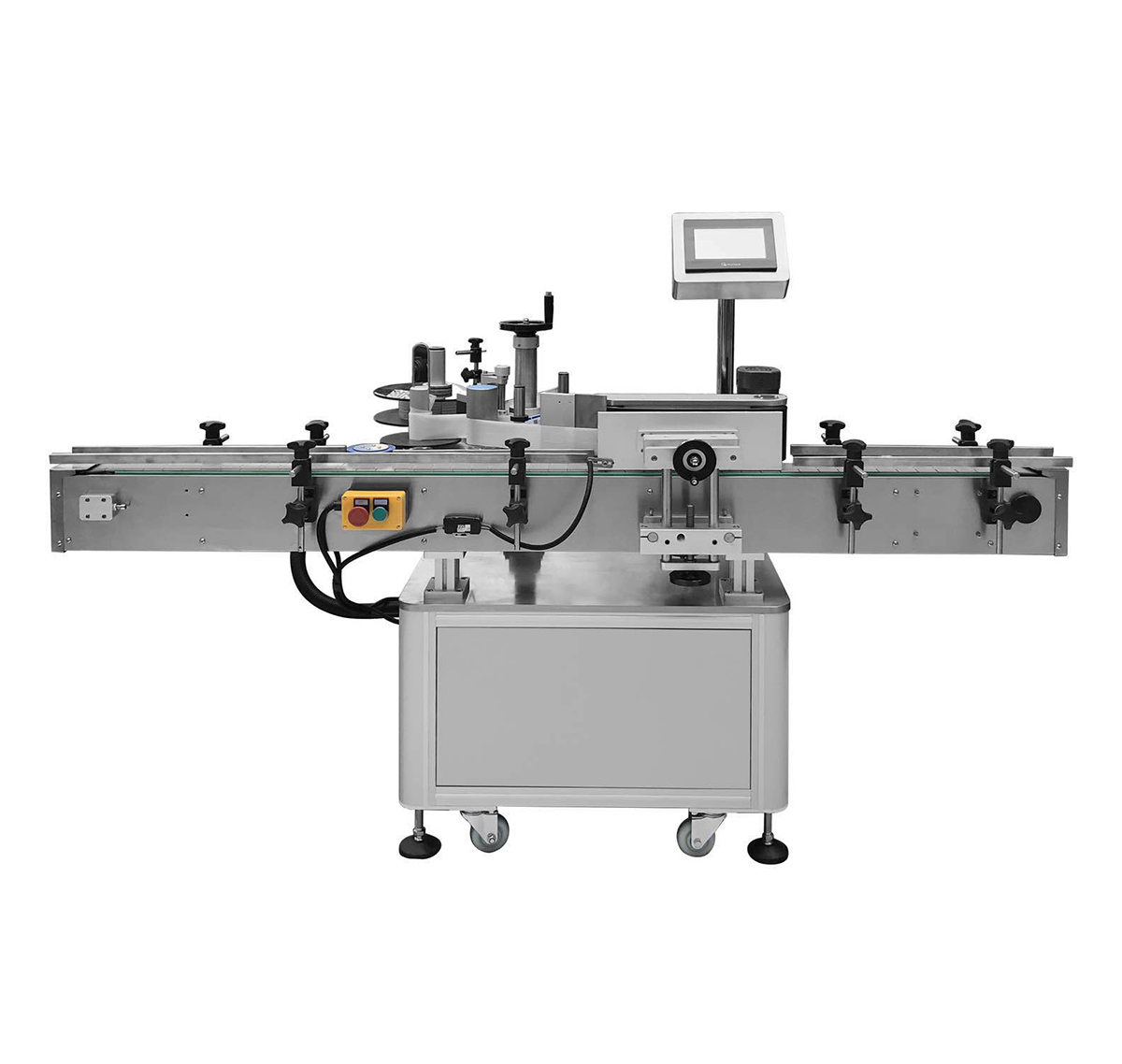 主要是采用不干膠卷筒貼標紙,貼標采用滾貼方式,配制自動送瓶和收瓶裝置,一次完成放瓶、貼標及收瓶程序,還可配備印字機同步完成標簽打印,本機采用電腦光纖控制,同步追蹤,出標由互感步進電機控制,出標速度與卷瓶速度同步的自動化包裝機械。是現代的機電一體化產品,具有優(yōu)良和的工作性能。不干膠貼標機具有不發(fā)霉、清潔衛(wèi)生,貼標后牢固、美觀、不會自行脫落,生產效率高等優(yōu)點。